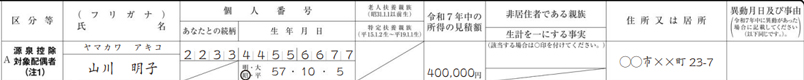 さて、では各項目でよくある箇所を説明していきます。 令和7年分の扶養控除等申告書で説明していきますが、令和8年分の扶養控除等申告書も同様なので、そのように記載してください。