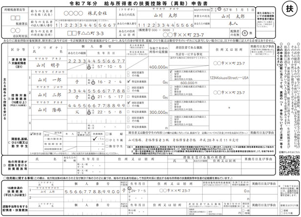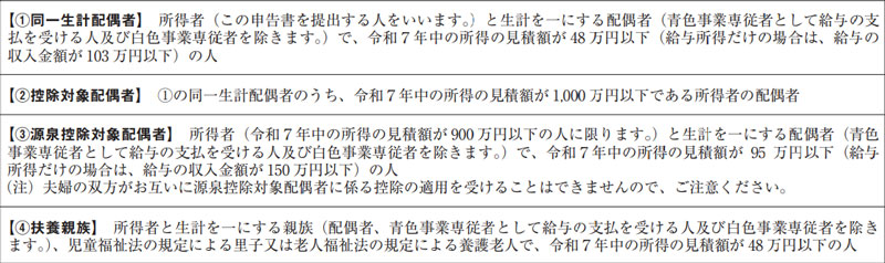 令和7年分 給与所得者の扶養控除等(異動)申告書(裏面)