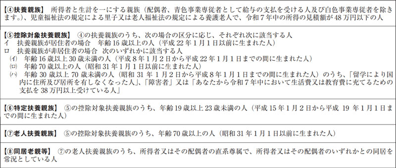 「特定扶養親族」、「老人扶養親族」及び「同居老親等」については、後述します。