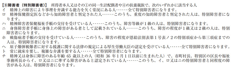 障害者は、「一般の障害者」と「特別障害者」(同居している場合は、「同居特別障害者」)に分類されます。