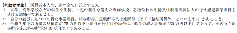 記入の際は、「障害者又は勤労学生の内容」欄に次の内容を忘れずに記入しましょう。