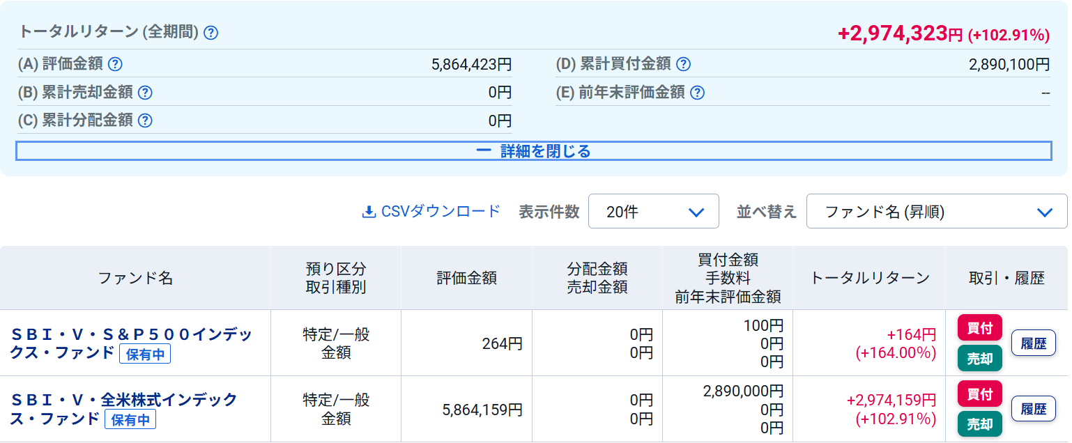 米国が最も間違いのない投資先だと思い、米国まるごとの投資先ならどの企業で動きがあっても余程プラスになるだろうと思って選びました。後述のSBI・V・全米株式インデックス・ファンドの方が信託報酬が低いので、つみたてNISAはSBI証券で選べばよかったと少し後悔しています。