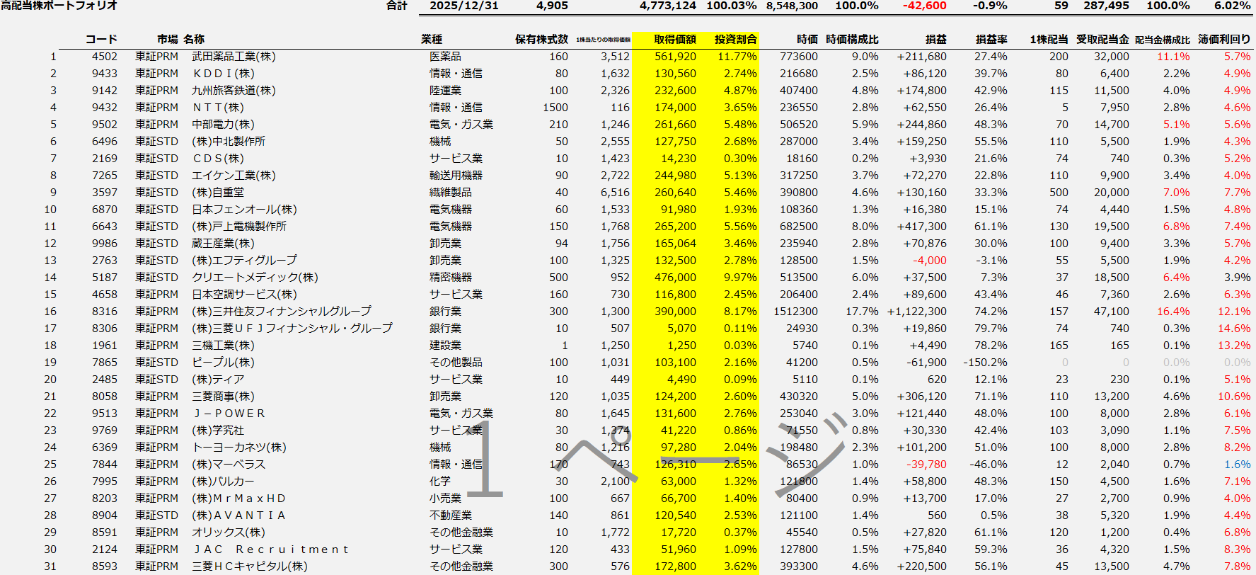 なお、投資を始めた令和3年の日本の高配当株は、こちら