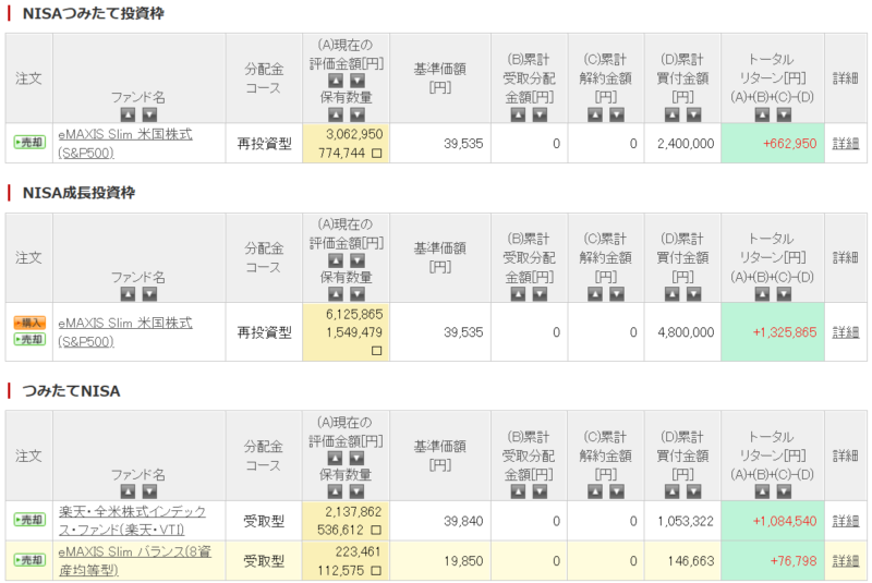 eMAXIS Slim米国株式(S&P500)については、上述のiDeCoで御紹介しましたので説明不要ですね。素晴らしい優良ファンドです。
