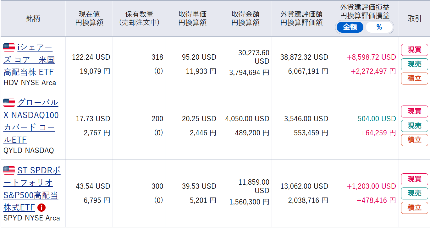 日本円を米ドルに換金して購入するため、損益計算が複雑です。