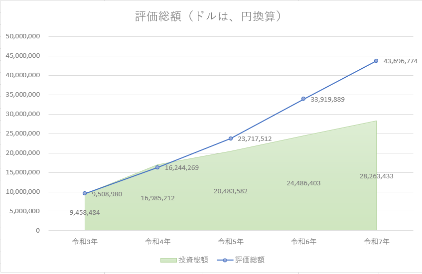 これだけでもすごいけど、令和4年からすごい円安だから、円に換算すると・・・。
