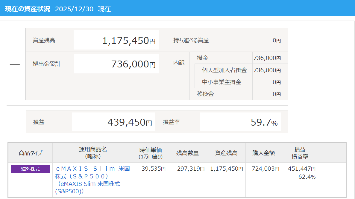 eMAXIS Slim米国株式(S&P500)は、上述のiDeCoのとおりです。信託報酬等の金額は、340円 (その年ごとの運用コストである隠れコストを除く。)