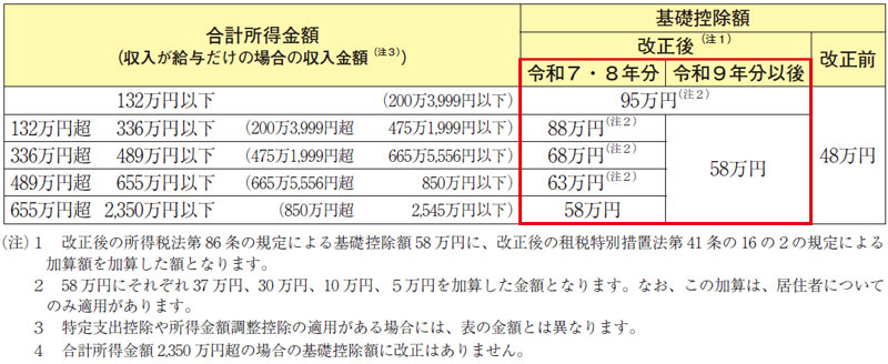 基礎控除は、令和7年分から所得に応じて変わることとなりました。