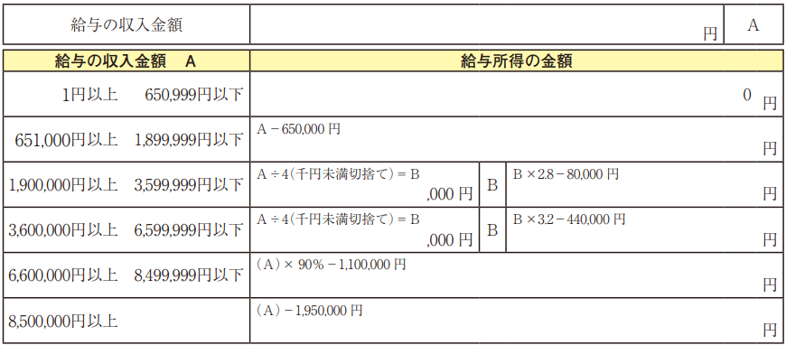 以上の条件に該当する場合、次の金額を給与所得から控除することができます。