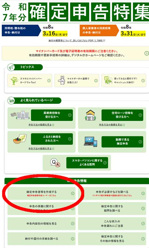 まずは、国税庁Webサイトの確定申告特集コーナーに行きましょう。