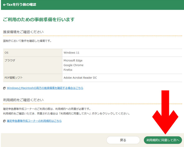 画面は、このとおり。↓の赤丸を次の画像のとおりクリックして進めると、確定申告書等作成コーナーに入ることができます。