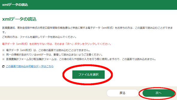XMLデータを読み込む画面に移ります。