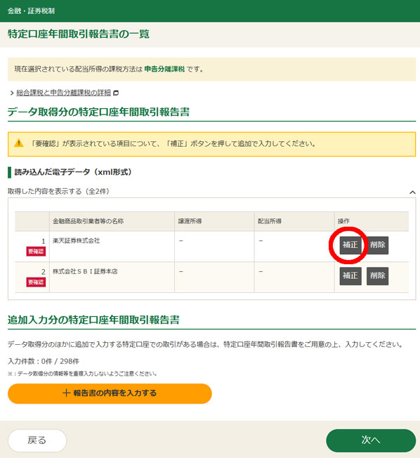 証券会社のWebサイトから特定口座年間取引報告書(xmlデータ)をダウンロードしておいてください。