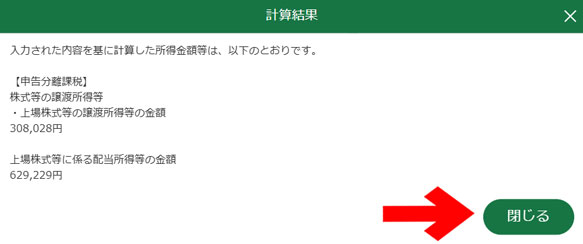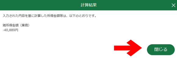 計算結果を確認し、「閉じる」をクリック