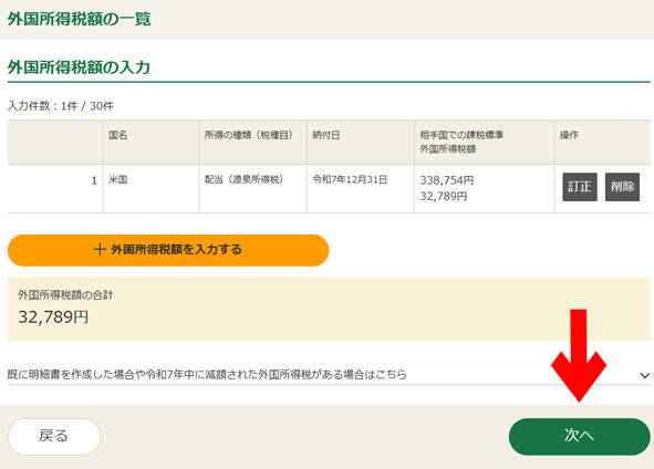 簡単!ちなみに、外国税額控除は、別で入力するから、忘れずにね。